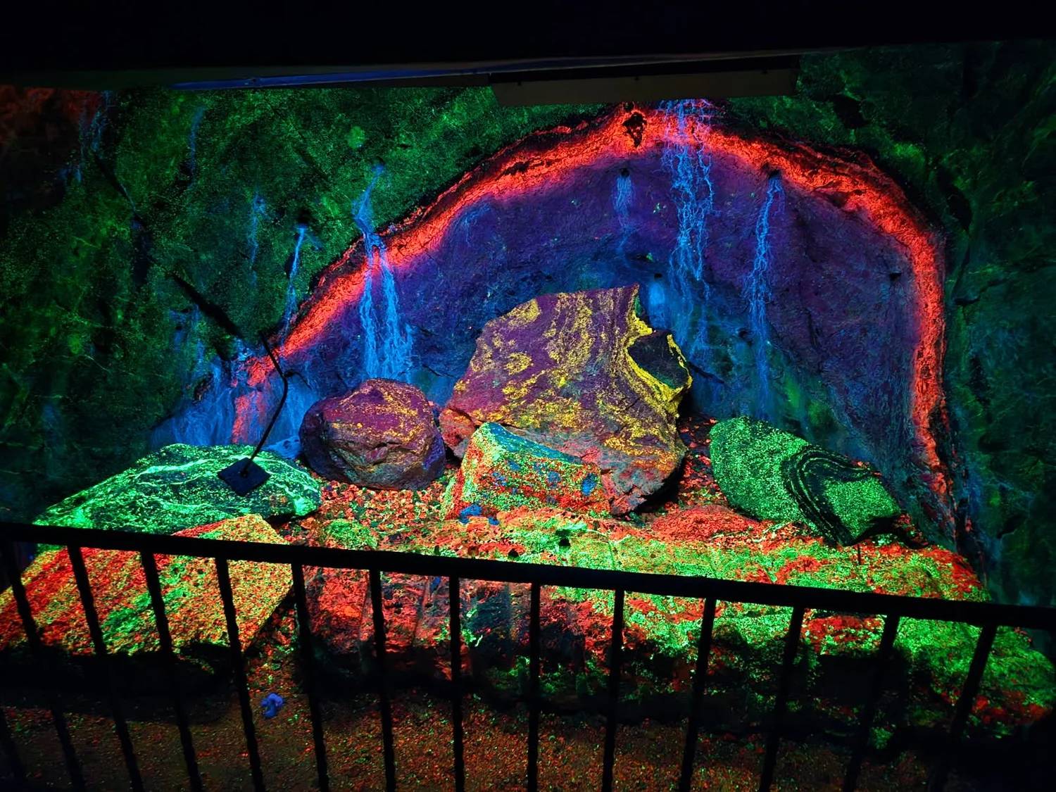 Most visitors come for the world-famous fluorescent "Rainbow Tunnel," where UV lights reveal over 350 minerals glowing in the dark, roughly 10% of all known minerals in the world, right here in NJ.
