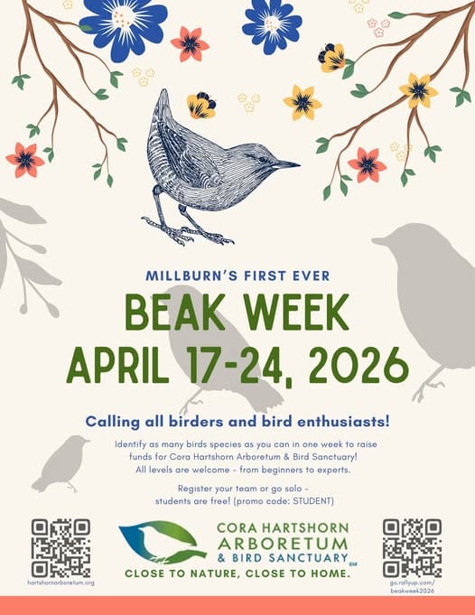 To participate, Beak Week birders identify and count bird species and ask family, friends, neighbors, and colleagues to donate to the Arboretum based on the number of species tallied. All funds raised support Cora Hartshorn Arboretum and Bird Sanctuary in Short Hills.