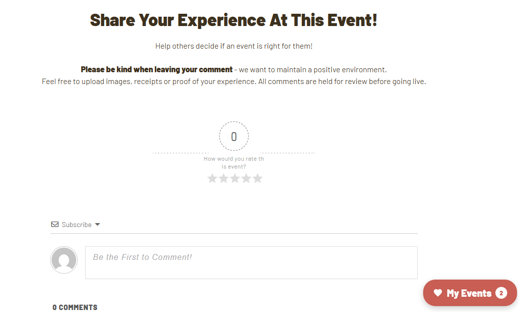 The poll I ran showed a lot of interest in the option to leave feedback on events. So, now you have it. Go to any event after you attend and leave some feedback so others can decide if it is right for them.